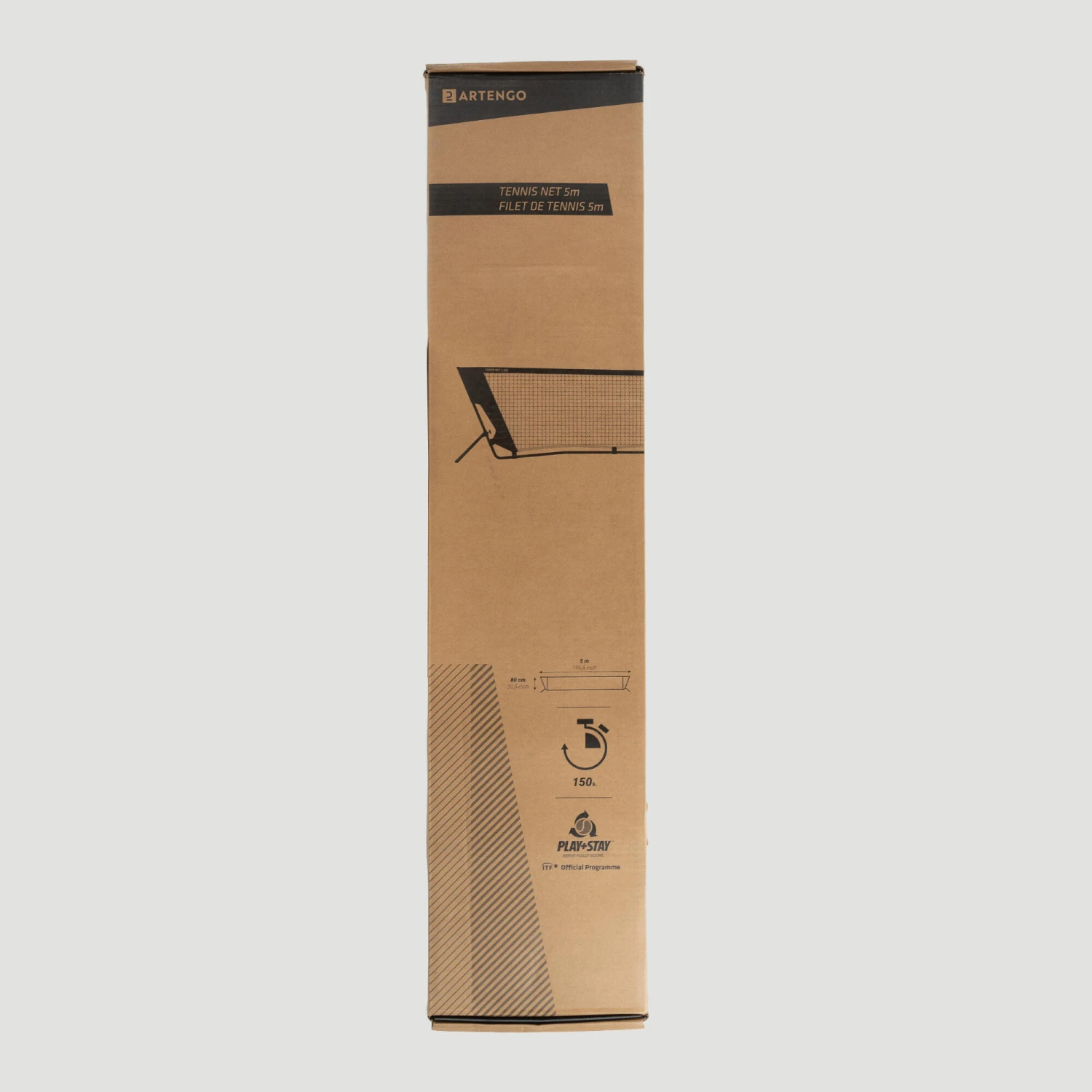 Our product engineers developed this tennis net so that coaches and players can easily set up a mini-tennis court.This net is 5 m long x 80 cm high and can be set up in a flash. Coaches and families can easily adapt it for kids!