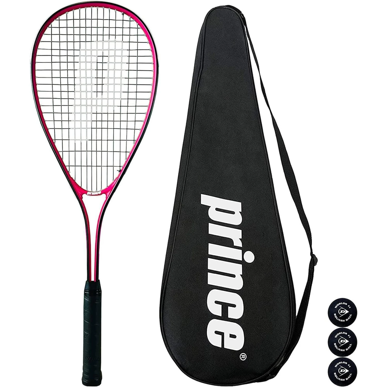 Comes With Full Length Carry Case and a pack of three squash balls.