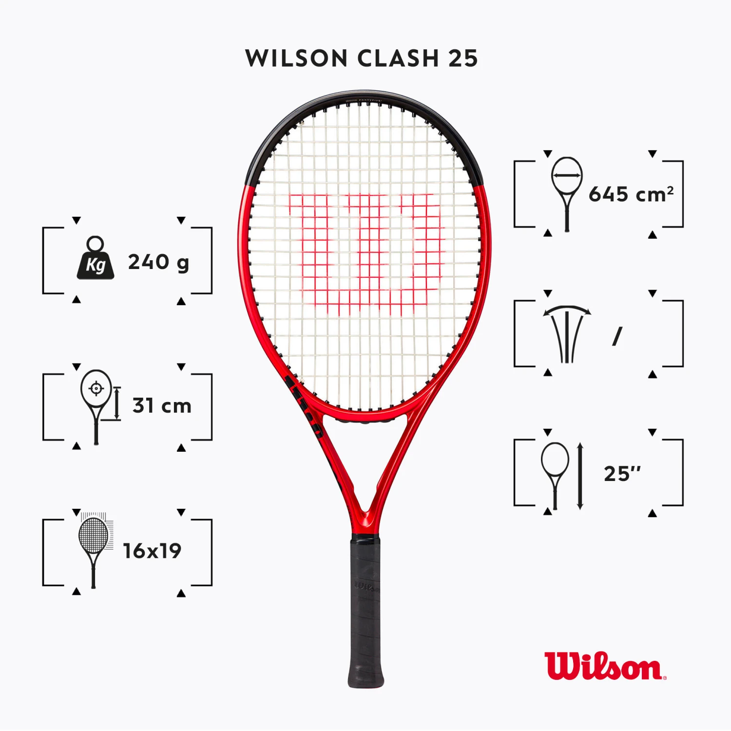 The Wilson Clash Junior 25 V2 racket has been designed for young competitors who are between 126 and 140 cm tall and want control, good handling and power.The Wilson Clash 25 V2 gives you the ideal balance between control, handling and power. Perfect for young competitors who are already technically competent and who want more feel.
